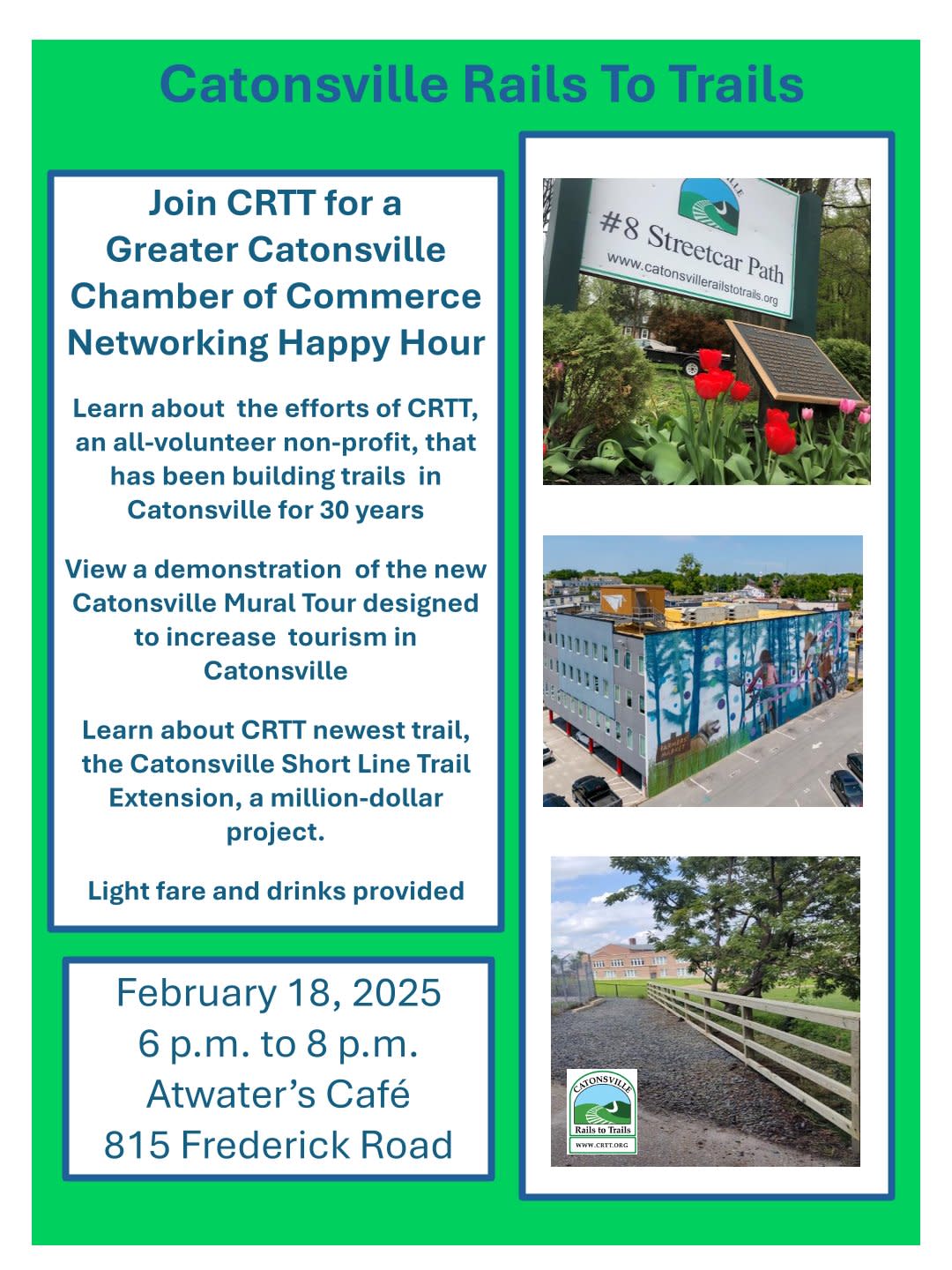 Join Catonsville Rails to Trails and us for a Networking Happy Hour at Atwater's!