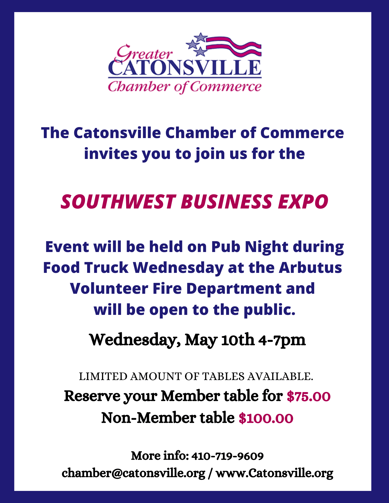 Show off your business for only $75 for Chamber members and, $100 for non-members.